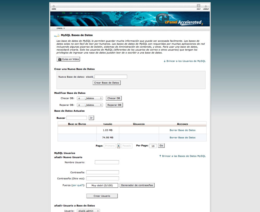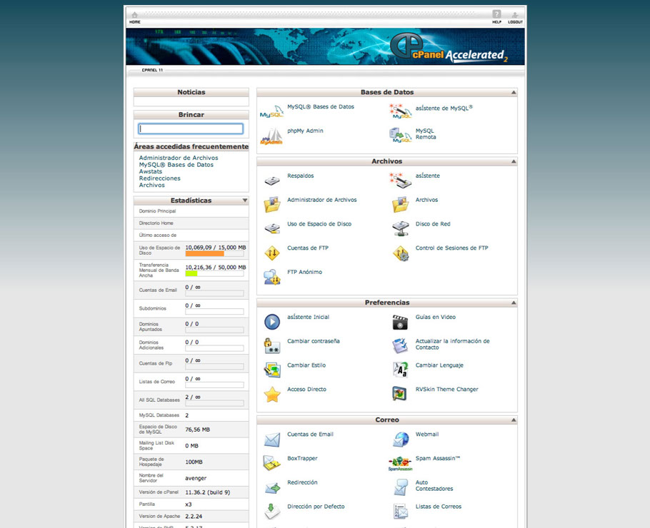 cPanel: Es una herramienta de administración basado en tecnologías web para administrar sitios de manera fácil.